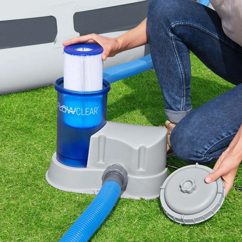 La maintenance d’un système d’épuration à cartouche doit être très régulière. Aussitôt la cartouche encrassée il faut procéder à un nettoyage succinct sous forme de rinçage à l’eau claire. Il n’était pas toujours simple de savoir où en était l’encrassement de la cartouche de filtration c’est pourquoi un nettoyage quotidien était souvent impératif. Désormais Bestway propose ce modèle d’épurateur à cartouche avec réservoir transparent, vous pourrez garder un oeil sur votre cartouche de filtration et surveiller son encrassement sans avoir besoin d’ouvrir trop fréquemment l’appareil. C’est un gain de temps important et un confort que vous gagnez au quotidien.